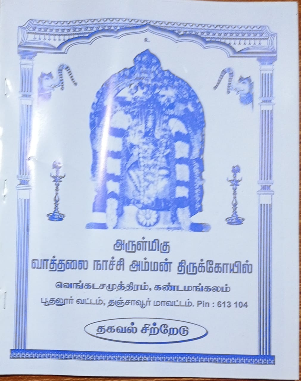 நீர் வளம் நிலவளம் பொருந்திய இச்சோழ வளநாட்டில் காவிரியில் ஏற்பட்ட வெள்ளப் பெருக்கினால் அடித்து வரப்பெற்று குடமுருட்டி ஆற்றங்கரையில் தென்பகுதியில் தஞ்சாவூர் மாவட்டம் பூதலூர் வட்டம் கண்டமங்கலம் கிராமத்தில் என்றகோயில் கொண்டு எழுந்தளிருக்கும் அருள்மிகு வாத்தலை நாச்சியம்மன் வெங்கடசமுத்திரம் கண்டமங்கலம் கிராமத்தின் கிராம தேவதையாகவும் கேட்பவர்களுக்கு கேட்கும் வரம் அளிக்கும் கருணை கடலாகவும், ஒரு கையில் தனவாசூரனை கிளியாகவும், ஒரு கையில் உடுக்கையும், ஒரு வகையில் பாசக்கயிறும், ஒரு கையில் அன்ன கிண்ணத்தையும், ஏந்தி ஆதிசக்தியின் அம்சமாய் விளங்கும் ஆதிபராசக்தி வாத்தலை நாச்சி அம்மன், வராகி அம்மன், முத்தாளுராவுத்தர், மதுரை வீரன் என்ற பரிவார மூர்த்திகள் புடைசூழ அருள்பாலித்து வருகிறான்