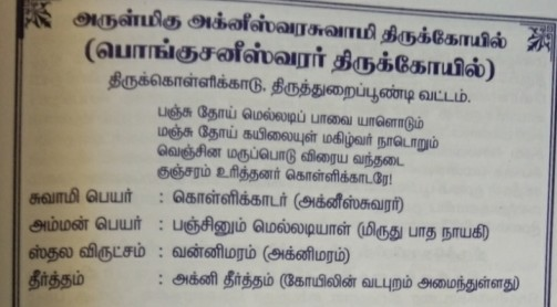 தீர்த்தம் . ...சுவாமி .கொள்ளிக்காடர் அக்னீஸ்வரா்