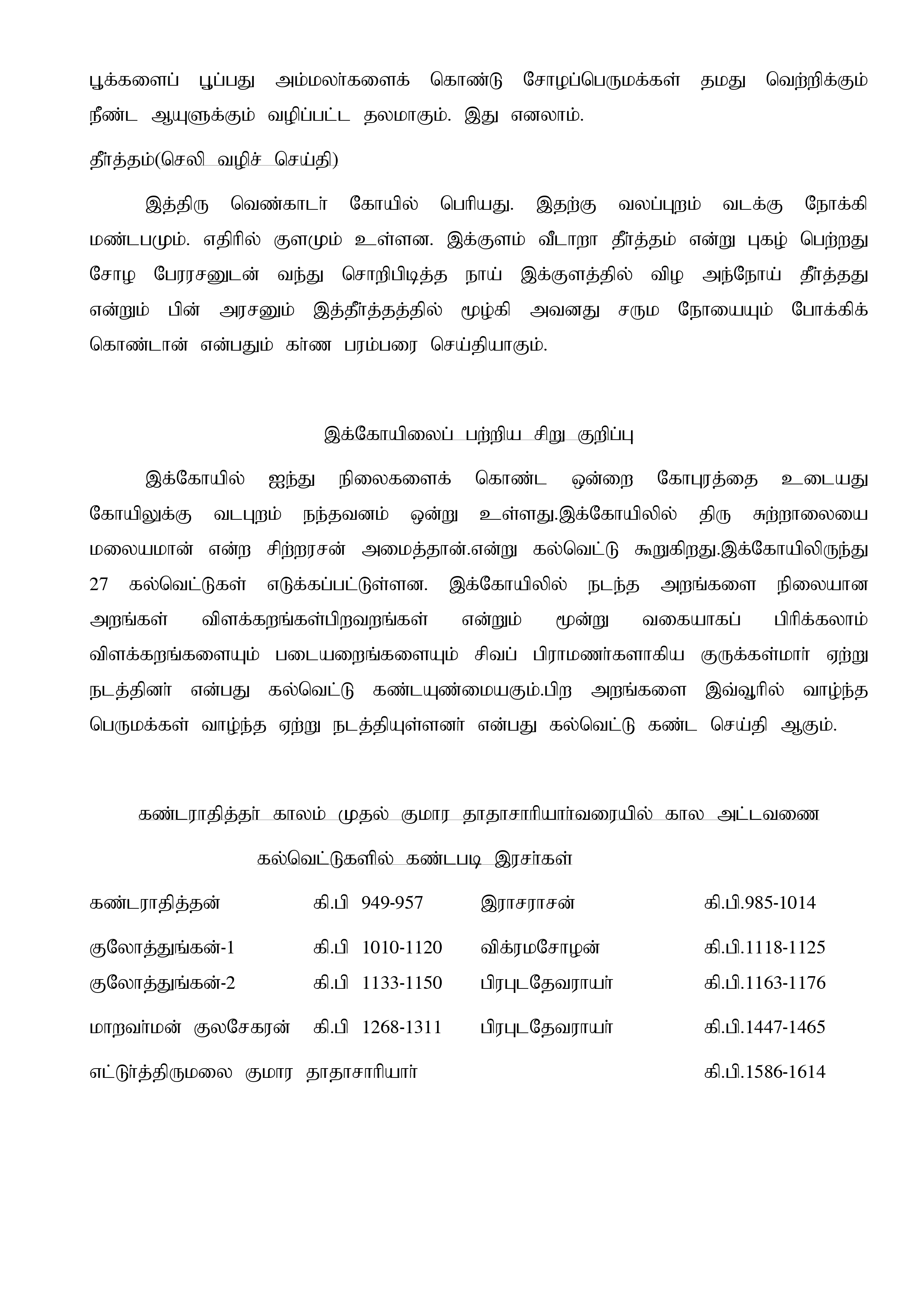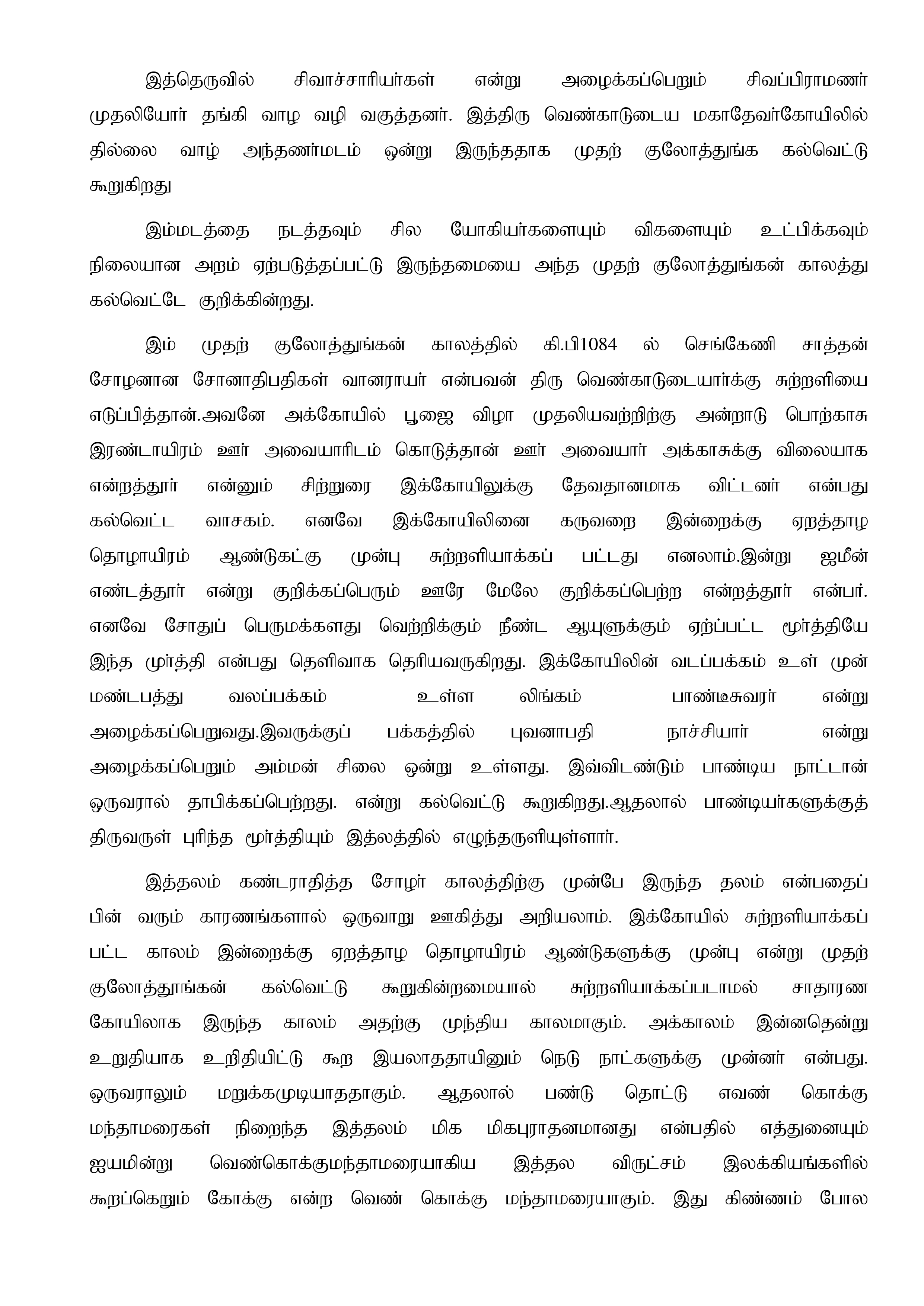 திருவெண்காடு என்னும் இத்தலம் தொண்டை நாட்டைச் சார்ந்த மதுராந்தகம் ஒரு பகுதியான கடப்பேரியில் உள்ள திரு வெண்காடுடையார் கோயில் என்னும் கல்வெட்டு புகழ் பெற்றதாகும். இந்தக் கடப்பேரி என்பது சுவாமி பேரில் இனாமாகக்கப்பட்டிருந்ததது. ஏனைய தலங்களைப்போல் இந்த தலமும் மூர்த்தி தீர்த்தம் தலம் என்ற முப்பெருமைகளை உடையது இங்கு உழுந்தருளியுள்ள பெருமாள் ஆதியில் வெண் கொக்கு மந்தாரைகள் நிறைந்த காட்டிற்கு இடையில் உண்டான பெருமாள் ஆகையால் வெண்கார் என்று அழைக்கப்பெற்றார் போலும் கல்வெட்டுக்களும் அங்ஙனமே திரு வெண்காடுடைய மகாதேவர் என்ற குறிக்கின்றன. இப்பெருமாள் மிக மிக பழைமையானவர் என்பதை கண்டராதித்த சோழர் காலத்து கல்வெட்டுக்களே தெளிவாக விஙக்கும் இச்சோழரது காலம் கி.பி.949 -957 இவர்தாம் மதுரையை காப்பாற்றிப் பாண்டிய நாட்டைத் தன் ஆட்சியில்...திருவெண்காடு என்னும் இத்தலம் தொண்டை நாட்டைச் சார்ந்த மதுராந்தகம் ஒரு பகுதியான கடப்பேரியில் உள்ள திரு வெண்காடுடையார் கோயில் என்னும் கல்வெட்டு புகழ் பெற்றதாகும். இந்தக் கடப்பேரி என்பது சுவாமி பேரில் இனாமாகக்கப்பட்டிருந்ததது. ஏனைய தலங்களைப்போல் இந்த தலமும் மூர்த்தி தீர்த்தம் தலம் என்ற முப்பெருமைகளை உடையது இங்கு உழுந்தருளியுள்ள பெருமாள் ஆதியில் வெண் கொக்கு மந்தாரைகள் நிறைந்த காட்டிற்கு இடையில் உண்டான பெருமாள் ஆகையால் வெண்கார் என்று அழைக்கப்பெற்றார் போலும் கல்வெட்டுக்களும் அங்ஙனமே திரு வெண்காடுடைய மகாதேவர் என்ற குறிக்கின்றன. இப்பெருமாள் மிக மிக பழைமையானவர் என்பதை கண்டராதித்த சோழர் காலத்து கல்வெட்டுக்களே தெளிவாக விஙக்கும் இச்சோழரது காலம் கி.பி.949 -957 இவர்தாம் மதுரையை காப்பாற்றிப் பாண்டிய நாட்டைத் தன் ஆட்சியில் சேத்துக் கொண்டமையால் மதுராந்தகம் என்ற அழைக்கப்பெற்றார். இவர் பெயரால் உண்டானதே இம் மதுராந்தகம் என்னும் ஊர்.