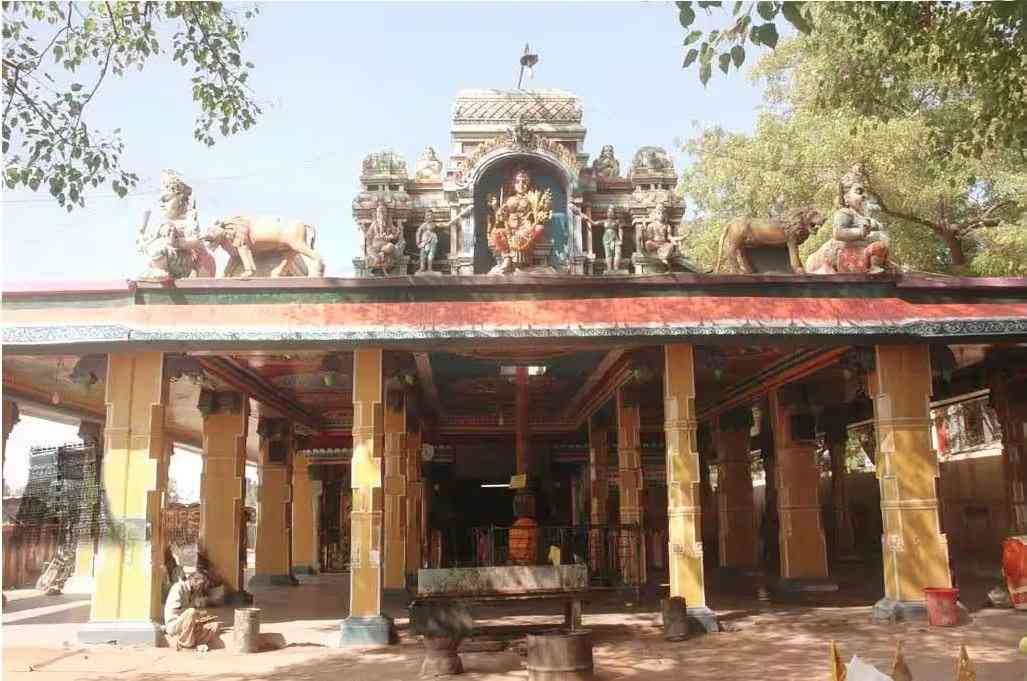 அகிலத்தை ஆளும் பராசக்தி, தனது ஆற்றலை வெளிப்படுத்துவதற்காக எடுத்த அவதாரமே துர்க்கை. யட்ச குலத்தில் அவதரித்த மகிஷாசுரன் எனும் அசுரனை அழிப்பதற்காக பராசக்தி, தன் சக்தியிலிருந்து ஒரு மாயசக்தியைதோற்றுவித்தாள். அந்த சக்திக்கு சிவன் சக்தி கொடுக்க அதுவே முகமாகவும், பிரம்மாவின் சக்தி உடலாகவும், திருமால் கொடுத்த சக்தி பதினெட்டு கரங்களாகவும், எமதர்மனின் சக்தி கூந்தல், அக்னி பகவானின் சக்தி கண், மன்மதனின் சக்தி புருவம், குபேரனின் சக்தி மூக்கு, முருகனின் சக்தி உதடு, சந்திரனின் சக்தி தனங்கள், இந்திரனின் சக்தி இடை, வருணனின் சக்தி கால் என அனைத்து சக்திகளும் இணைந்த அம்பிகையாக துர்க்கை உருவெடுத்தாள். மகிஷாசுரனுடன் போரிட்டு வென்றதால் இவள் மகிஷாசுரமர்த்தினி என்று பெயர் பெற்றாள். மாரியம்மனும், துர்க்கையும் வேறுவேறு வடிவங்களாக இருந்தபோதிலும், இருவரும் அம்பிகையின் அம்சமாகவே திகழ்கின்றனர். இதனை உணர்த்தும்விதமாக இக்கோயிலில் இவ்விருவரும் சேர்ந்த அமைப்பில் காட்சி தருகின்றனர். இவ்வாறு ஒரே அம்பிகையில், இரண்டு அம்பாஸ்களை தரிசனம் செய்வது அபூர்வம்.