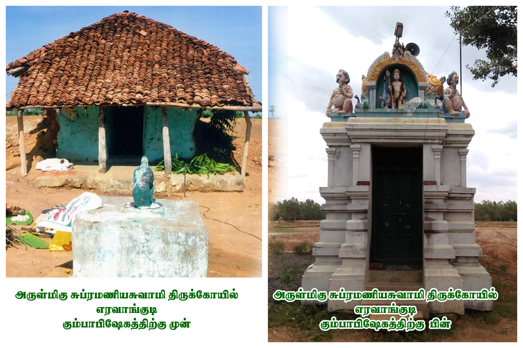 அரியலூர் மாவட்டம், உடையார்பாளையம் வட்டம், எரவாங்குடி கிராமத்தில் தண்ணீர் பஞ்சம் ஏற்பட்டது. ஆதலால் அக்கிராம மக்கள் அங்குள்ள ஏரியில் கிணறு ஒன்று தோண்டினார்கள். அப்போது முருகன் சிலை ஒன்று கண்டெடுக்கப்பட்டது. அச்சிலையை அந்த ஏரிக்கரையிலேயே நாட்டு ஓடு வேய்ந்த மேற்கூரை கொண்ட சிறிய கட்டிடத்தில் பிரதிஷ்டை செய்து கிராமமக்கள் வழிபாடு செய்து வந்தனர். சுமார் 50 வருடங்களுக்கு பின்னர் திருப்பணி செய்து 06.02.2014 அன்று மகாகும்பாபிஷேகம் நடைபெற்றது.