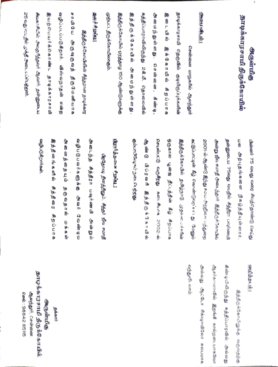 இத்திருக்கோயிலில் சித்தரான தாடிக்கார சுவாமியே அருவுருவத் திருமேனியாக வழிபடப்படுகிறார். விஸ்வநாதன் என்ற இயற்பெயர் கொண்ட தாடிக்கார சுவாமி சிவகாசியில் அவதரித்தவர் ஆவார். தன்னுடைய இருபத்தைந்தாவது வயதில் முக்தி அடைய பெற்றார். பின்னர் எழுபத்தைந்தாவது வயது வரை சிவத்தொண்டு செய்து பல அற்புதங்களை நிகழ்த்தியுள்ளார். தன்னுடைய எழுபத்தைந்தாவது வயதில் சித்ரா பௌர்ணமி அன்று ஜீவசமாதி அடைந்தார். இத்திருக்கோயில் ம் ஆண்டு இந்து சமய அறநிலையத்துறை கட்டுப்பாட்டில் கொண்டுவரப்பட்டது. மேலும் இத்திருக்கோயிலில் தமிழ்நாடு முதலமைச்சரின் ஒரு கால பூஜை திட்டத்தின் கீழ் சிறப்பாக செயல்பட்டு வருகிறது. கடைசியாக ல் ஆண்டு பிப்ரவரியில் இத்திருக்கோயில் கும்பாபிஷேகம் நடைபெற்றது