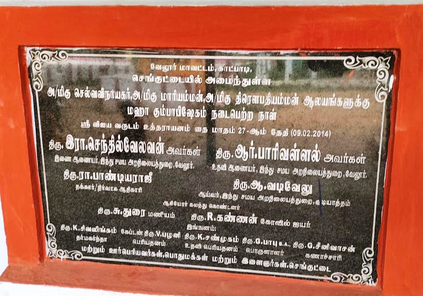 அருள்மிகு திரௌபதியம்மன், மாரியம்மன் திருக்கோயில், செங்குட்டை - 632007, வேலூர்