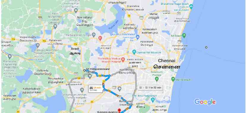 சென்னை விமான நிலையம் முதல் வேதபுரீஸ்வரர் கோவிலுக்கு