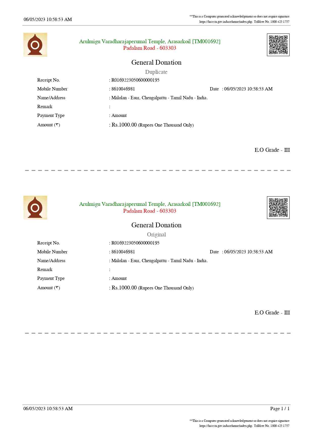 Arulmigu Varadharajaperumal Temple, Arasarkoil - 603303, Chengalpattu District [TM001692]